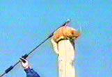 Cat Jumps off Telephone Poll A cat climbed a telephone poll got stuck at the top for over a day and when the fire department showed up to get the cat down it decided to jump. Now I understand the whole thing about cats always landing on the feet, but still this should hurt at least a little.