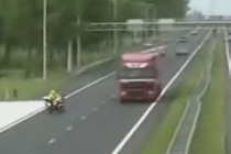 ![]() ![]() Unlike Lauren Conrad, this cop has trouble stopping traffic. When a speeding car doesn't see him in front of a giant semi, he ends up their newest hood ornament.