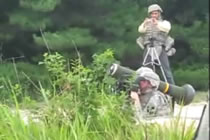 ![]() ![]() A couple soldiers practice firing a Javelin Anti-Armour Missile but shortly after it launches it falls only a few feet away causing the troops to scatter.
